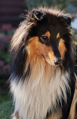 Er ist ein sehr freundlicher Rüde und hat sich super dem Rudel angepasst. Durch seine Agilität ist er ein richtiger Muskelprotz geworden, der sich aber auch seine Ruhezeiten nimmt.